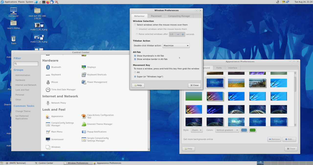 Myös Linux Mintin tarjoama. MATE on jatkoa vanhalle GNOME 2:lle, joka oli hyvin suosittu. Se tarjoaa perinteisen työpöytäkokemuksen ja on suhteellisen kevyt.