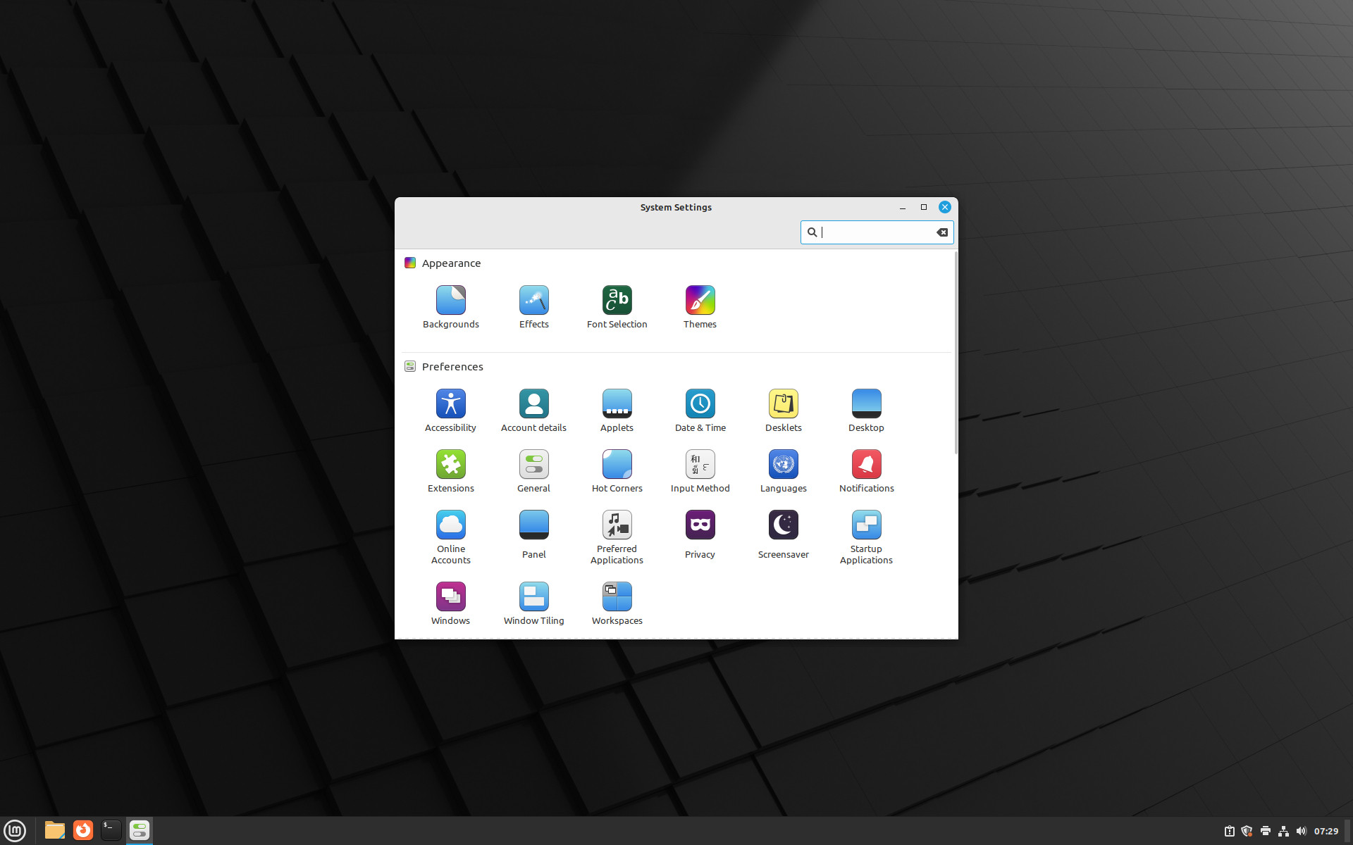 Linux Mintin oma työpöytäympäristö, joka tarjoaa perinteisemmän käyttökokemuksen Windows-käyttäjille. Siinä on käynnistä-valikko, tehtäväpalkki ja ilmoitusalue. Se on helppokäyttöinen ja tyylikäs.